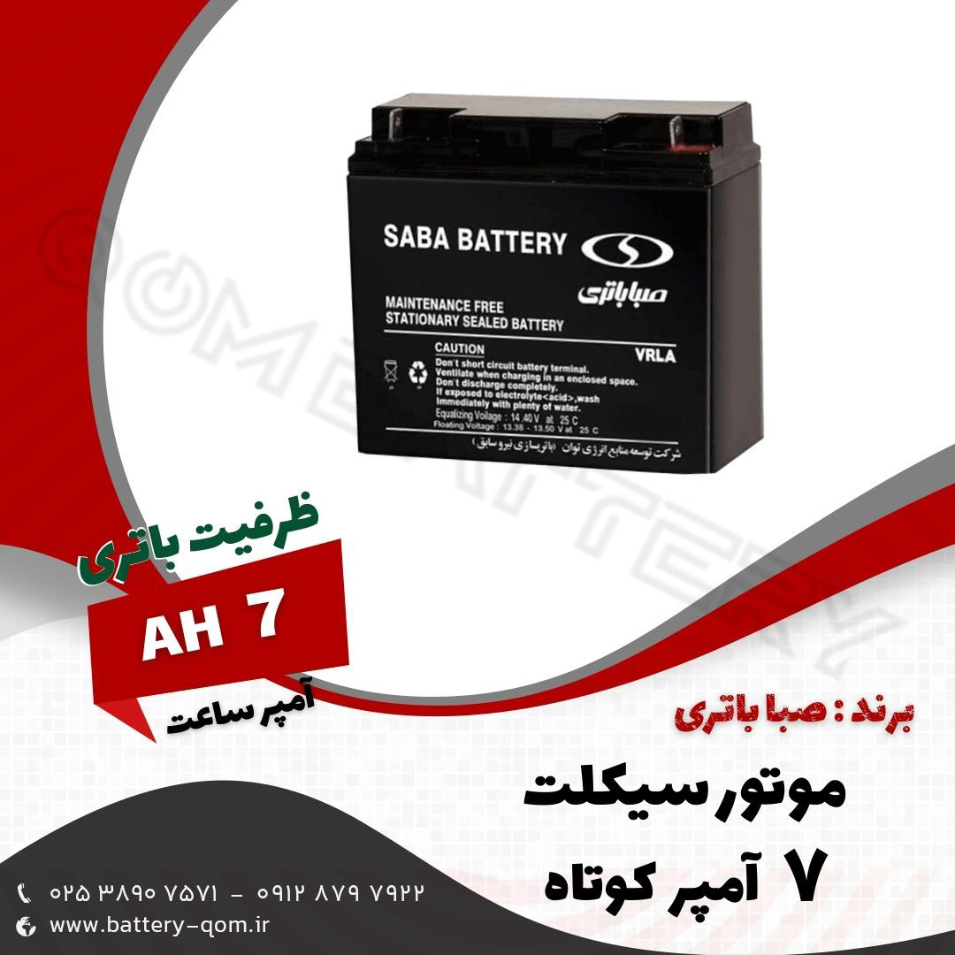 باتری ۷ آمپر کوتاه موتور سیکلت صبا باتری